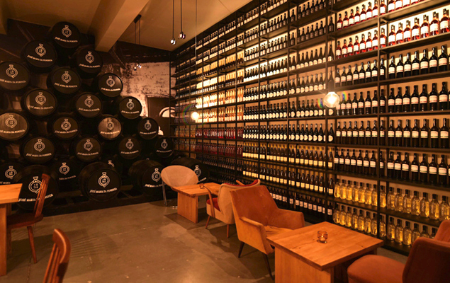 Entre os melhores vinhos portugueses e petiscos gastronómicos, passe ótimos momentos à mesa ou à barra. O teto em abóbada forrado com mais de 3000 garrafas é magnífico!